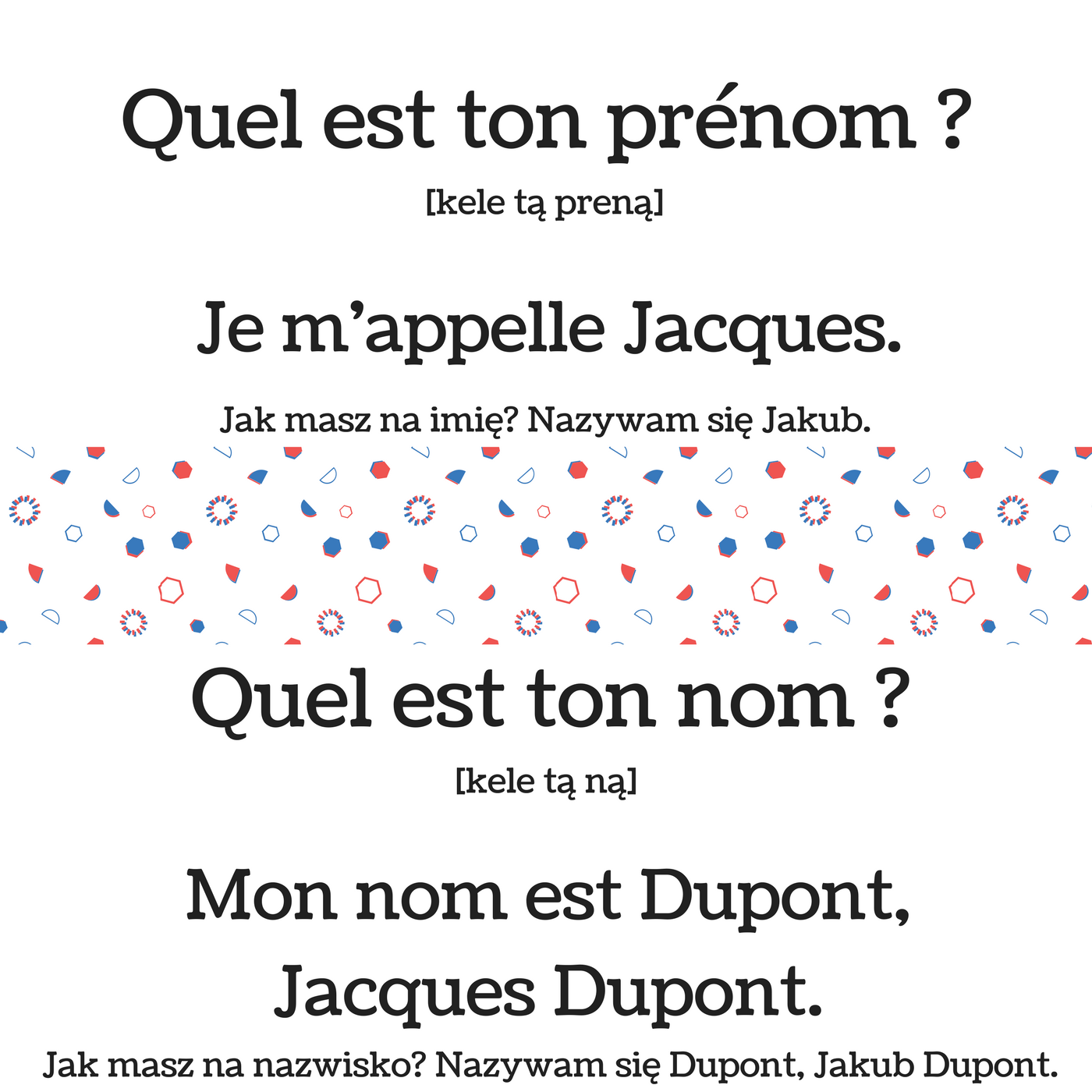 dodatkowe pytania z użyciem wyrazów le prénom - imię i le nom - nazwisko.